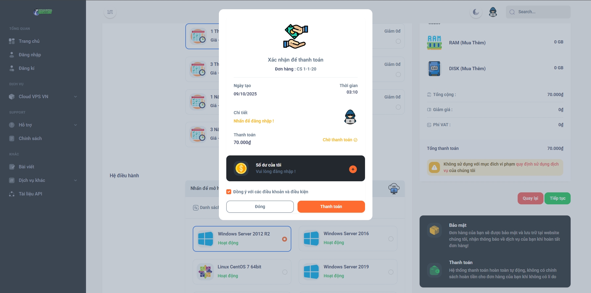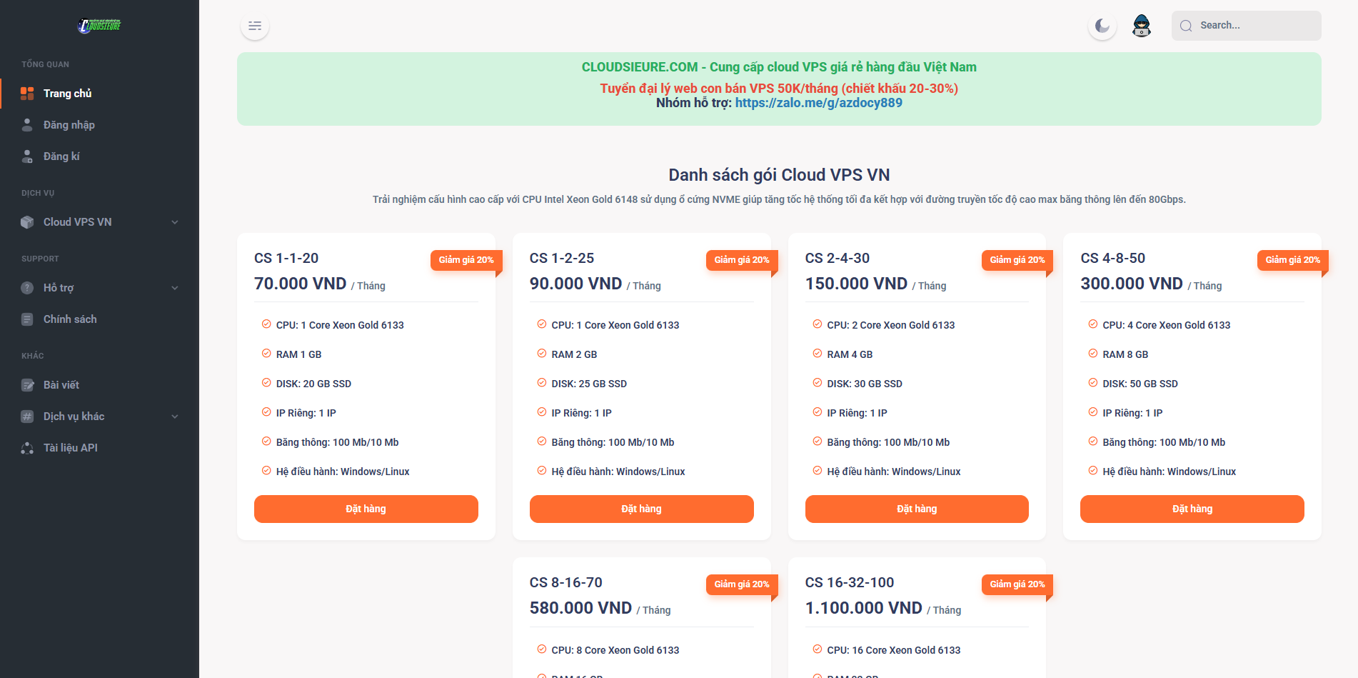 [VERSION 1] Thiết kế website bán Cloudvps tự động qua API